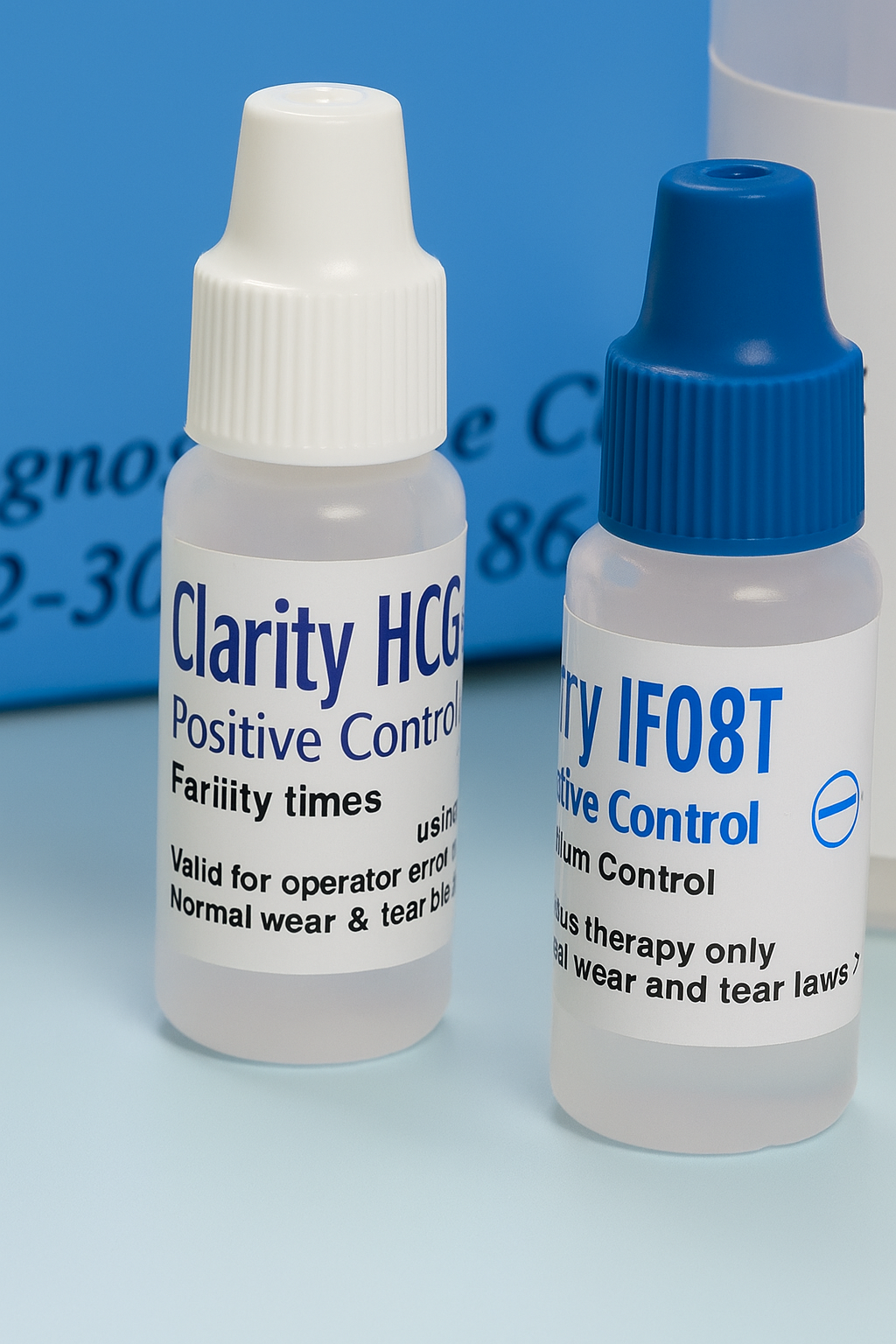 There are two internal control features in Clarity IFOBT Rapid Test Device. A colored control band will always appear at the Control position (C) if the test has been performed correctly and if the device is working properly. This is considered an internal positive procedural control. A clear background in the result window is considered an internal negative procedural control. If the test has been performed correctly and Clarity IFOBT device is working properly, the background in the result window will be clear, providing a distinct result. Good laboratory practice recommends the periodic use of external control materials to ensure proper kit performance. The included positive and negative controls can be run in place of stool specimen according to the test procedure for this purpose.