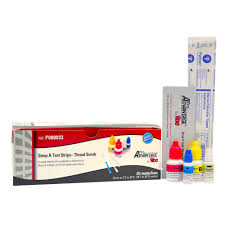 This rapid test is for the qualitative detection of Strep A antigen with a throat swab specimen. Lateral flow immunoassay technology identifies antibodies specific for whole cell Lancefield Group A Streptococcus to selectively detect Strep A carbohydrate antigen in a throat swab specimen.